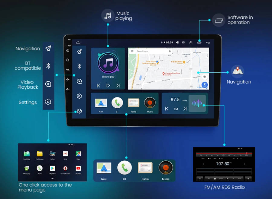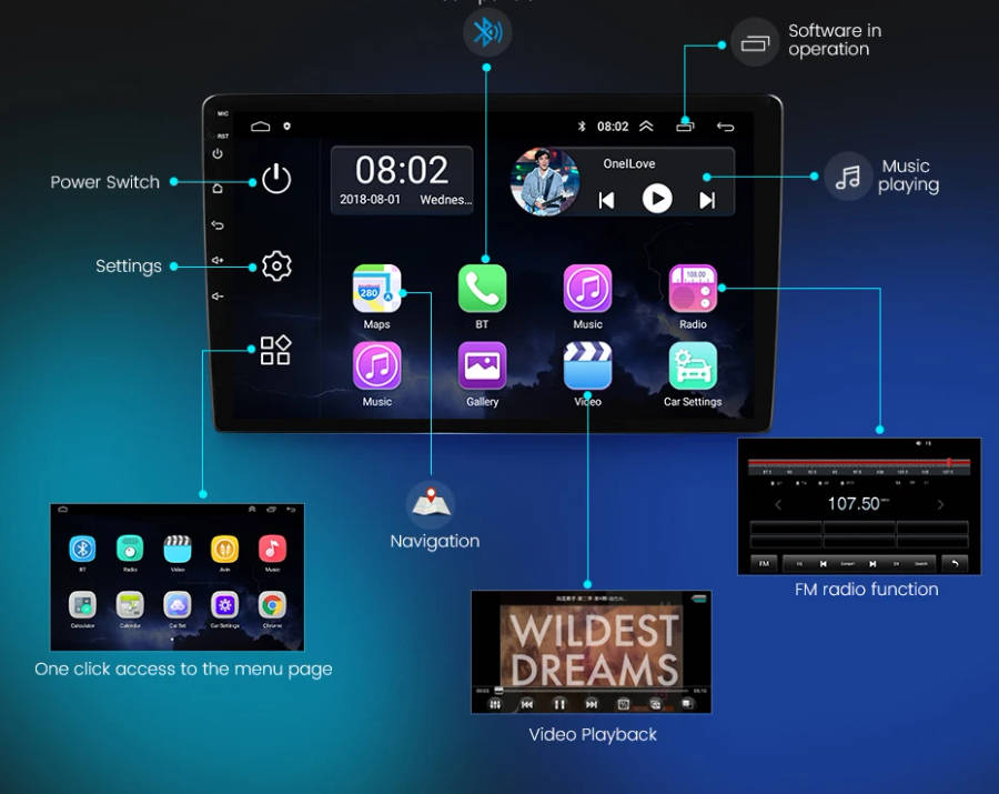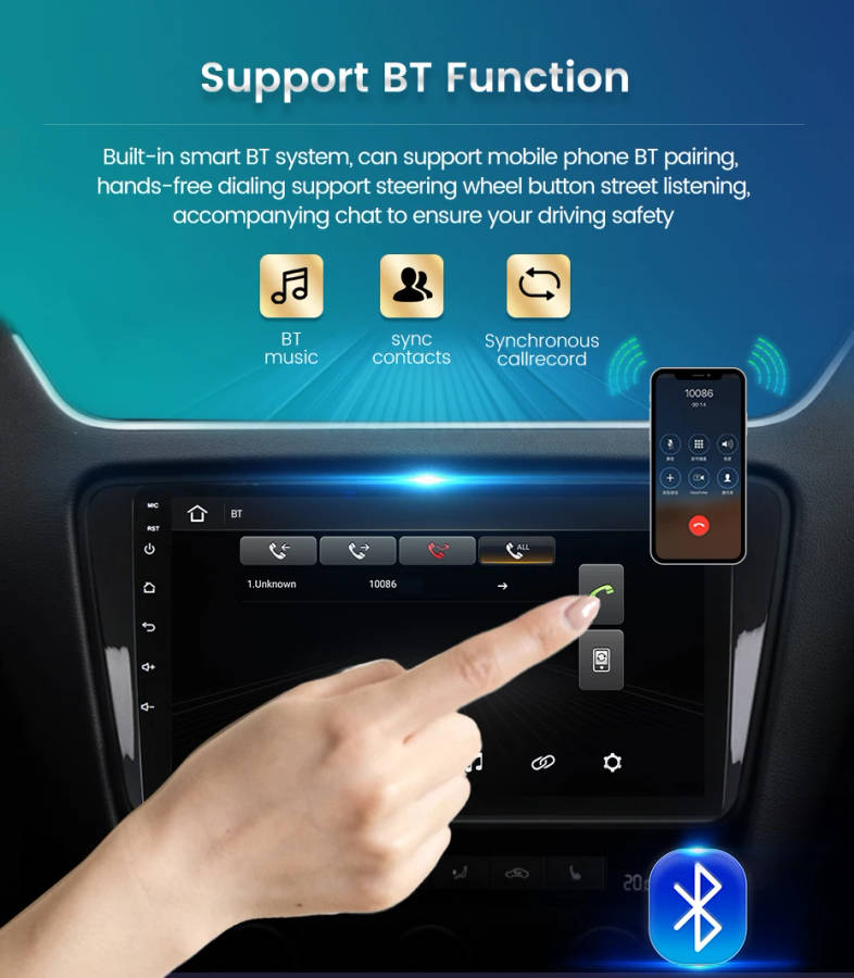 Can support mobile phone BT pairing,hands-frss dialing support teering wheel button streer listening,accompanying chat to ensure your driving safety.