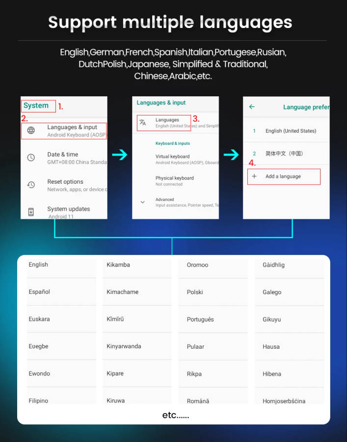 Russian,English,Spanish,Italian,French,Czech,Arabic,German,Hebrew,Chinese,Estonian,Polish,Filipino,Finnish,Korean,Dutch,Croatian,Latvian,Lithuanian,Romanian,Norwegian,Portuguese,Japanese,Swedish,Thai,Turkish,Ukrainian,Hungarian,Slovak,Danish,Slovenian.