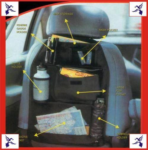 ^ This item attaches to the front seat headrest, and hangs at the back of the front seat.