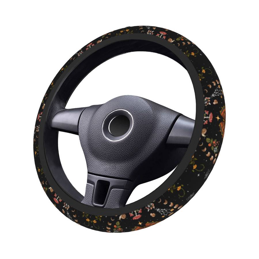 1pc Whimsical Moon Phases & Butterflies: Enchanted Floral Night Garden Art Steering Wheel Cover That Fits for all Types of Vehicles, Including Trucks And Motorcycles, Perfect for Thanksgiving, Halloween, Christmas Gifts, And Party Supplies