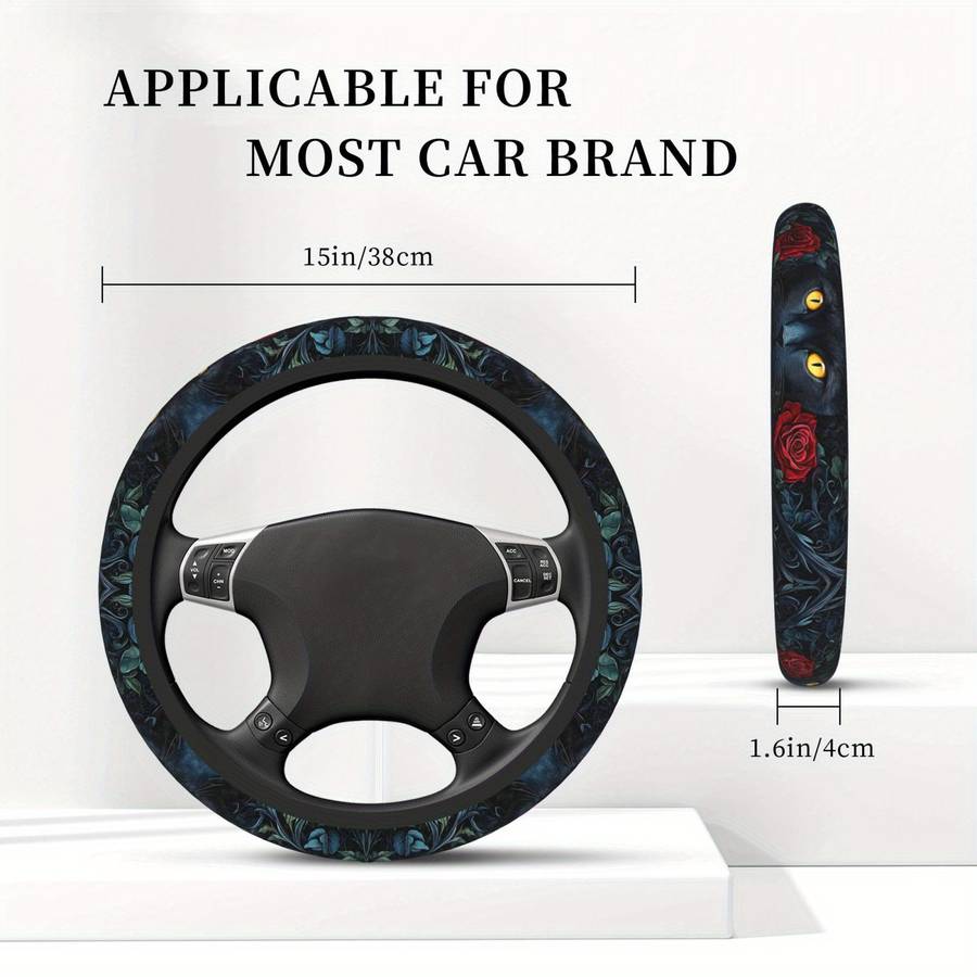 Universal Size:Elastic Steering Wheel Cover Fits Most Handlebars With A Diameter Of 15/38cm.2 free coastersᆪᆲProduct Features Made Of Stretch Fabric, Sunscreen, Breathable, Absorbent And Wear-Resistant. Touch Comfort To Enhance Your Driving Pleasure and Experience. Universal Size, Suitable For Most Cars.