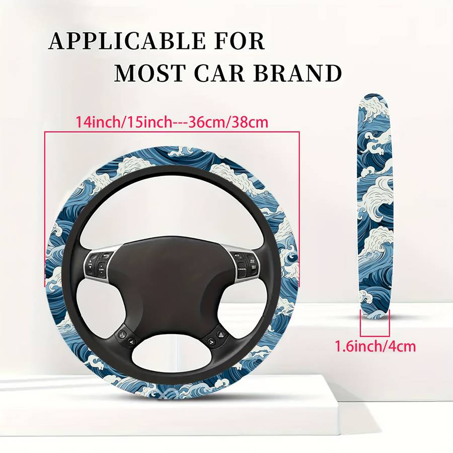 Neoprene Steering Wheel Cover with Wave Illustration, Non-Slip Grip, Sweat Absorption, Bohemian Design, Universal Fit for Most Cars, SUVs, Trucks - Steering Accessory for Women (1pc)