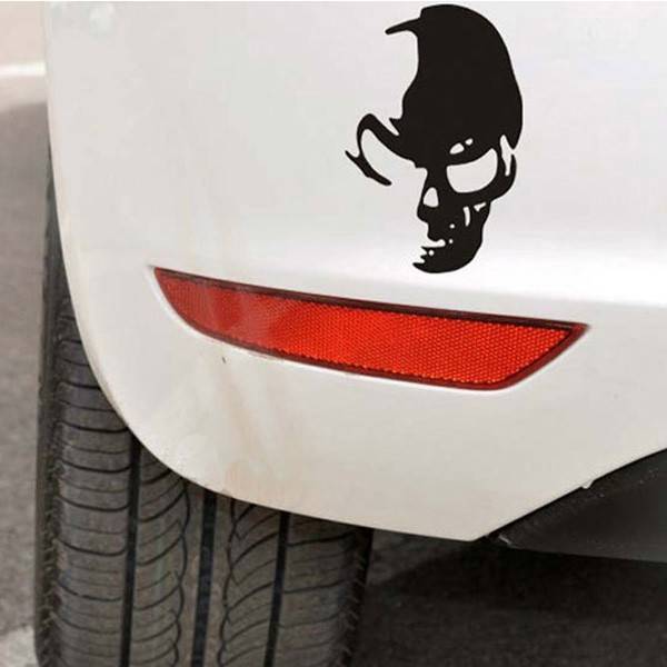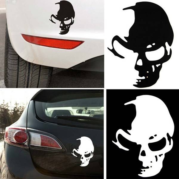 Pattern: Skull Size: 14*10cm Material: Reflective Material Color: Black, White(delivery randomly ) Used for: Fits for Car body, Rear, Window, Windshield