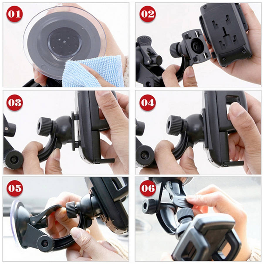 5. Suck the holder on a proper position of the front windshield and you can select the best visual angle and easily access to all controls of your device.