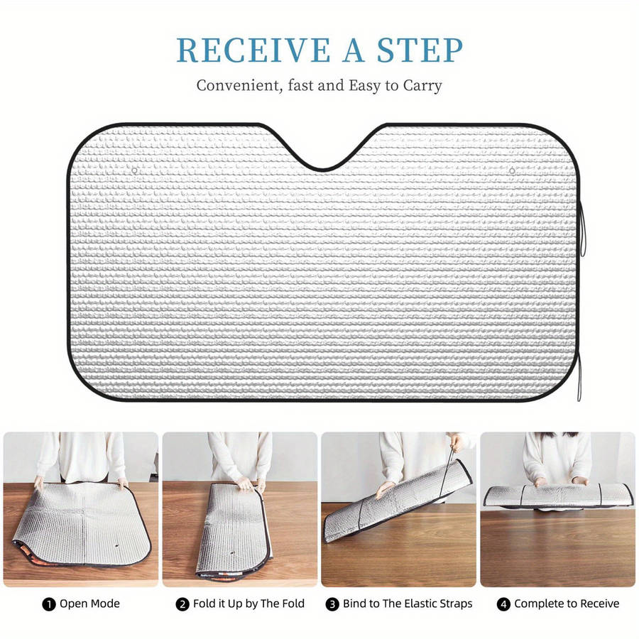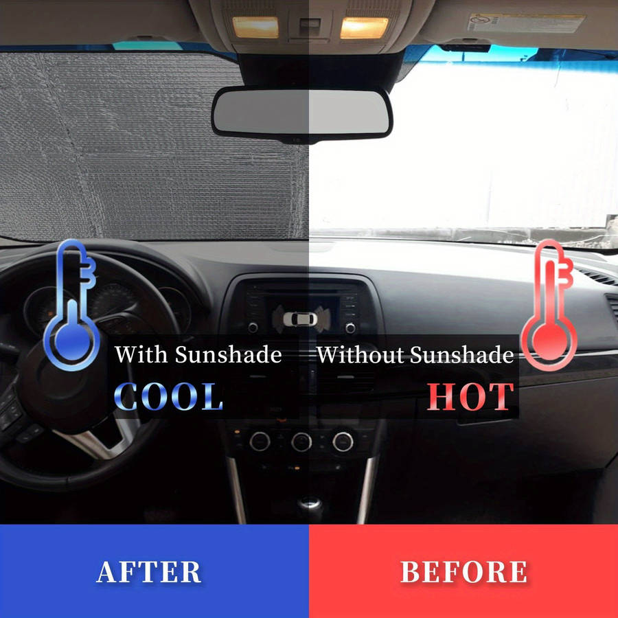 This sunshade is suitable for most cars with a windshield size of approximately 30 inches in height and 55 inches or less in width. It comes equipped with four independent suction cups to securely attach it to the glass. It is durable, lightweight, portable, and easy to install and remove