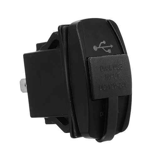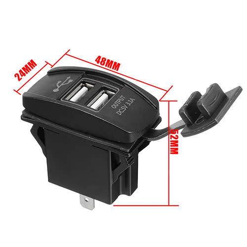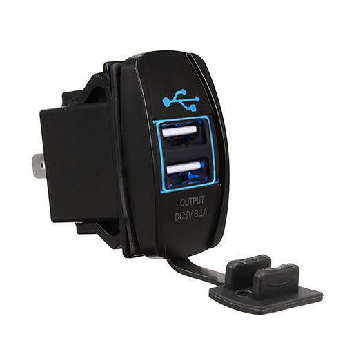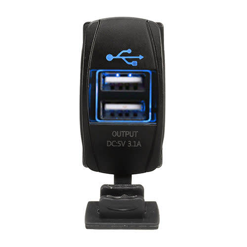Car Twin USB Charger Power Socket Rectangle Blue Led DC 12-24V: