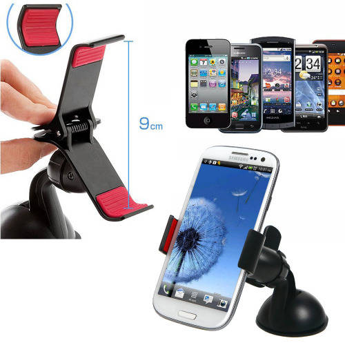 Universal phone and GPS mount Suction cup mounts to any windscreen or dashboard 360° pivoting mount, easy to install and adjust Universal Car Mount was designed to work with most Multimedia Devices, whether it is your mp3 player, smart phone, iPod, or may be the NAV system. U-GRIP will fit any device from 3.5 to 5.3 inch screens. Its 360 degree adjustable head let`s you adjust the viewing position to any angle. Single-handed operation lets you easily mount device on the mount as well as removing it.Universal Car Mount for most Phones. Quickly and easily mount and unmount your phone or device.Fits most Phones with 3.5 to 5.3 inch screens. Adjustable 360 degree viewing angles.Single-handed operation. No more hassle putting your phone or device on the mount.