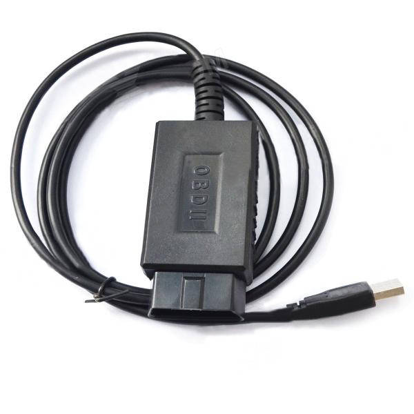 The ELM327 USB OBD2 V1.4 car diagnostic interface tool is used to read diagnostic trouble codes.