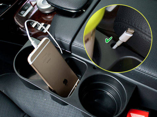 Fits snugly and conveniently between your seat and console without interfering with seating room.