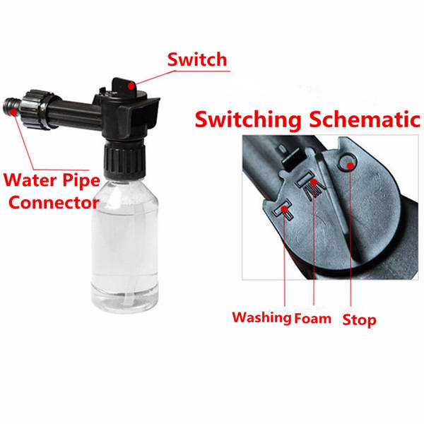 Features: Portable Car Wash Foam Bottle Lightweight, convenient to carry It can play foam within 20 seconds or wash car directly with water A helpful washing tool for washing cars Great for car washing with foam and for household Specification: Material:Plastic Color: Transparent&Black Height: Approx. 19cm Bottle Dia.: Approx. 5.8cm Bottle Capacity : 200ML Sprayer Length: Approx. 11cm Net Weight: 97g Package Includes: 1 x Car Wash Water Pipe Foam Bottle