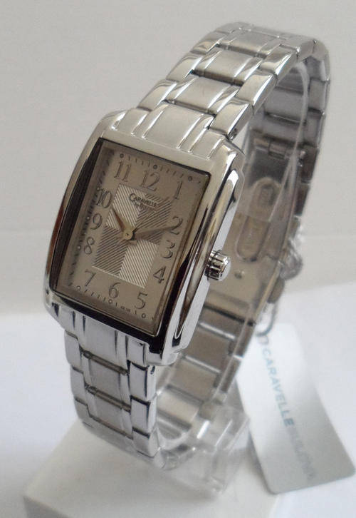 CARAVELLE BY BULOVA SILVER DIAL CLASSIC ELEGANT WOMENS TANK WATCH