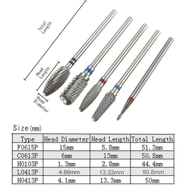Features: Carbide bits use a cutting action to remove product. Creating less dust with little friction and heat. Suitable for professional salon or home use. High wear resistance. Perfect heat reduction. Very high removal. Completley resistant to chemical disinfectants. An optical highlight on your desktop. Solid carbide cutters with cutting cone tip, cross toothing. The bit is characterized by very high strength and durability. Working on artificial nails is guaranteed by the rounded cutting tip. The cutter is designed for professional use for the removal of gel and acrylic panels with high efficiency and celebrations. It will also act like the removal of calluses. Wet and dry use.