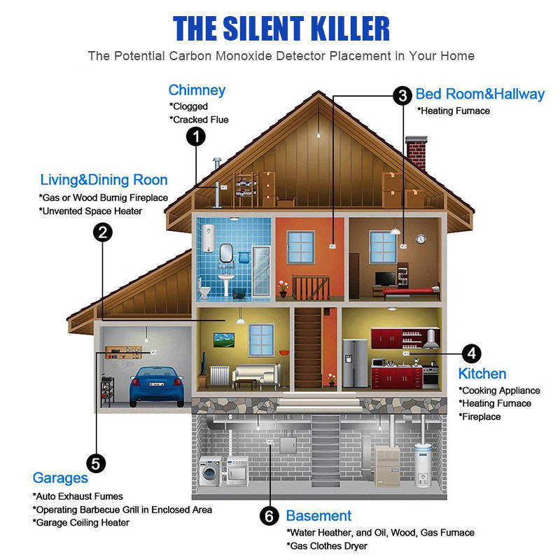 3. SAFETY AND VISIBLE—Protect the Family from Carbon Monoxide, With 3 digits LCD Displayer is Optional, "Err" on the LCD to indicate the unit is malfunctioning. "Lb" on the LCD to indicate it low battery and need to replacement. "999ppm" on the LCD to indicate CO level over 999ppm. If the Co leakage is less than 999p.