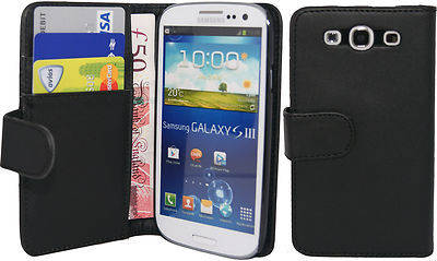 Card Holder Slot Black Wallet Flip Cover Case Pouch For Samsung Galaxy S3 i9300