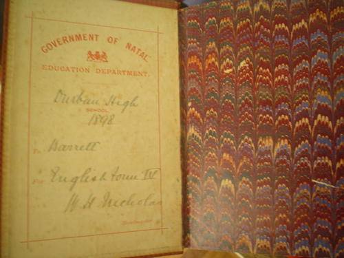 1895 hardcover in full leather in good condition for the age. 226 pages. Picture below shows pasted in front: Goverment of Natal Education department Durban High School. R28 postage in SA.