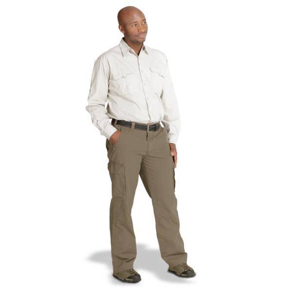 Rugged cargo look for everything from the outdoors to the office. Features include triple-stitched back rise, right side hammer-loop and bar-tacking on all the pressure points. Deep front pockets with side and back pockets with flaps, also including concealed studs. 100% cotton canvas fabric Enzyme washed Available in three colourways