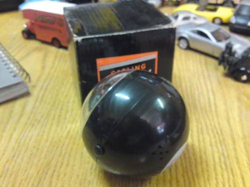 This item comes as 'New In Box' in that it has never been used and is in mint condition. I have had it for some time and the box has some scuffing along the edges. I would have it a guess that it is between 30-50% larger than a tennis ball.
