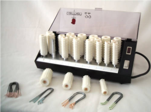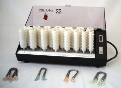 Carmen 22 Beautiful Scandinavian Design Hot Roller Set Slimline Black Case with Lightly Tinted Lid decorated with One Red Rose 22 Rollers - 5 large 5 med 7 small 5 smaller Gently used. Works great, Curlers get hot and stay hot to set long lasting curls. With clips Type C22 Model No. 10278-D 220 Volts 840 Watts Made in Denmark