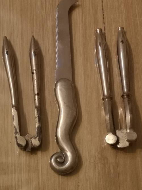CAROL BOYES KNIFE AND TWO NUTCRACKERS.