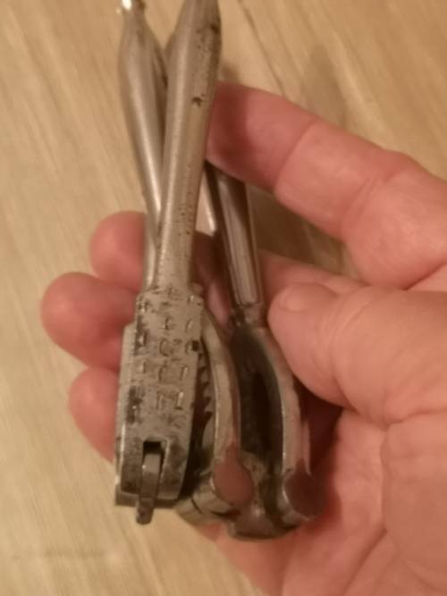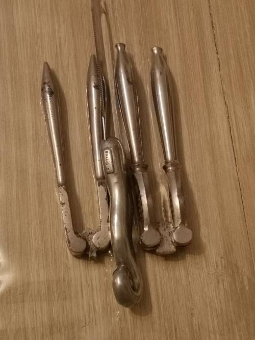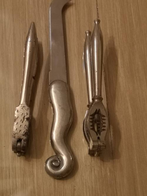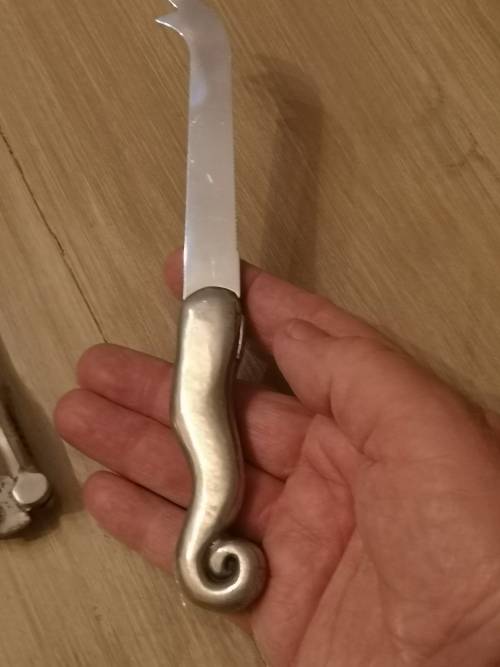 CAROL BOYES CHEESE KNIFE AND TWO VINTAGE NUTCRACKERS.