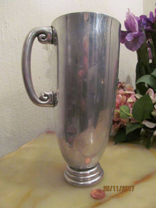 EARLY CARROL BOYES PEWTER WATER PITCHER / JUG WITH WAVE PATTERN HANDLE