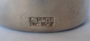it is in good condition except for two small tarnish spots visible in photo two, but they don't detract from the piece at all.  It stands 5.7cm tall, and measures altogether about 8.6cm across.