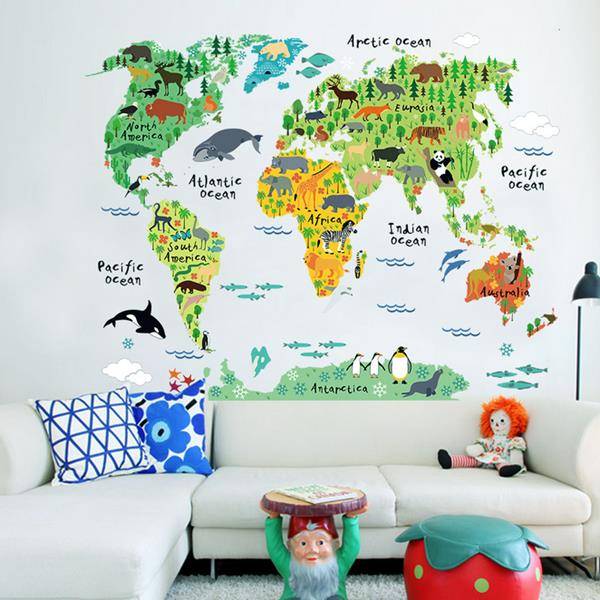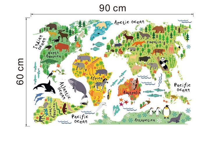 Cartoon Animal World Map Wall Sticker Living Room Home Decoration Creative Decal DIY Mural Wall Art