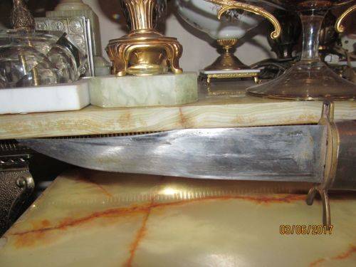SIZE : CARVING KNIFE -- 41cm LENGTH.....19.5cm LENGTH OF BLADE.....4.5cm HANDLE AT BOLSTER.....3.5cm WIDTH OF BLADE AT BOLSTER