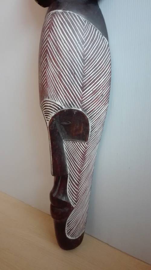 Carved Wooden African Mask. size: height 60cm. width 14cm depth 10cm