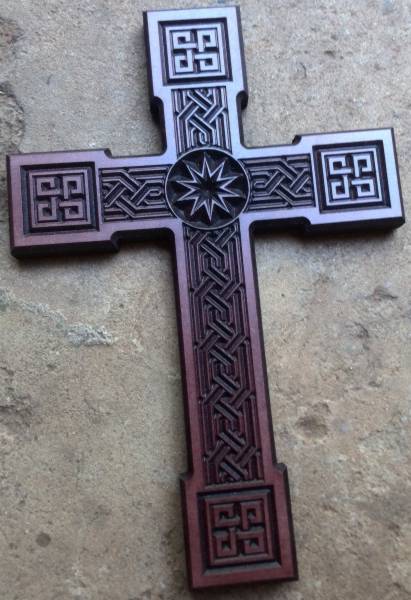 Carved and hand-finished wooden crosses for sale. Lovely and very collectable. Very desirable gifts. Available in dark-brown, light-brown and gold antiqued finishes. Items are 35cm tall and can be hung flush on a wall with attached recessed hook on the back. Free delivery is offered for a limited time only.
