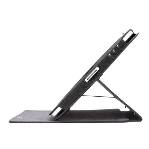 The case easily converts into a stand using hidden snap closures to create an ideal viewing angle. A complementing soft microfiber interior completes the case.