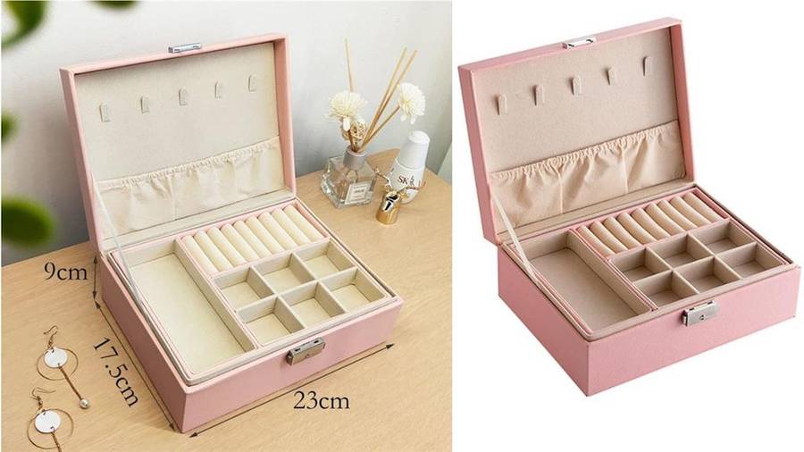 This two-layer jewelry box is very practical and can store all your jewelry. In addition, the drawer compartment is detachable to meet your needs. Don't worry that your jewelry will get dirty or damaged.