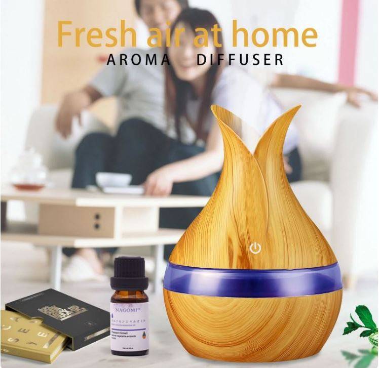 Casey Ultrasonic Aroma Portable Humidifier Light Wood Grain Finish- 300ml Water Capacity, Vase Shaped Design, 7 Soothing LED Lights, USB Powered , Purifies And Humidifies Air, For Home Office And Car, Retail Box No Warranty