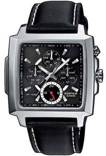 CASIO EDIFICE Analog 4 dials Octagon leather bracelet black