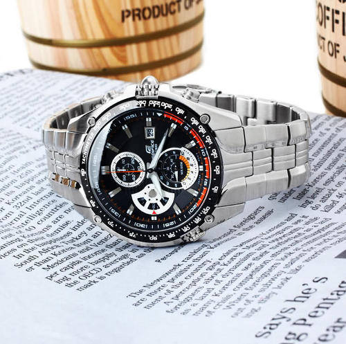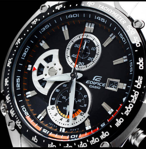 Analog: 3 hands (timekeeping hour and minutes, stopwatch seconds), 3 dials (timekeeping 24-hour and seconds, stopwatch minutes)