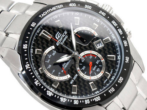 AUTHENTIC NEW IN BOX CASIO EDIFICE CARBON DIAL CHRONOGRAPH MIN/DAY RETOGRADE MENS WATCH EF-521SP-1AV