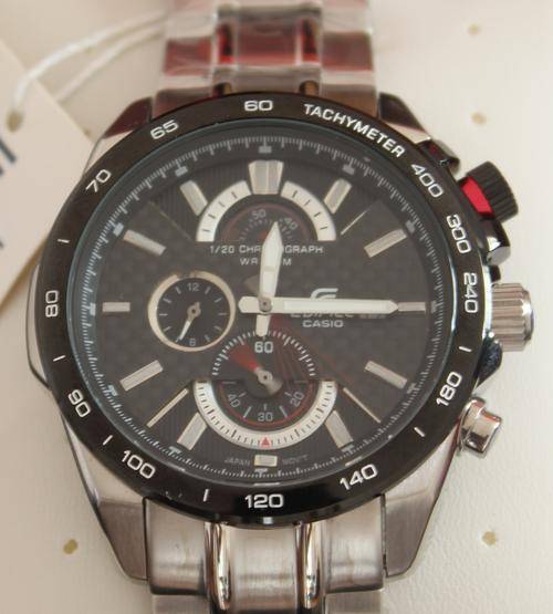 -EDIFICE logo stamped on the crown, back cover and clasp