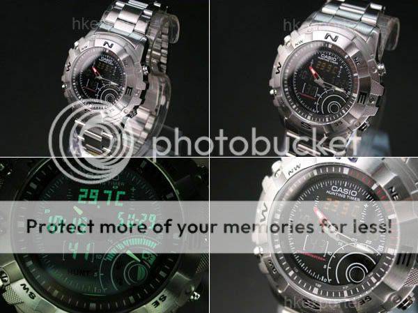 SPECIFICATIONS A 5-level indicator uses animal tracks to indicated the best time to hunt, based on the Moon age and Moon position (time). The watch also uses a thermo sensor to display the current temperature, while a Moon Graph appears in a digital window. The analog hands of this watch show current time, while a full-face LCD displays other information using easy-to-read characters.st many exciting features including a tide graph and moon data.
