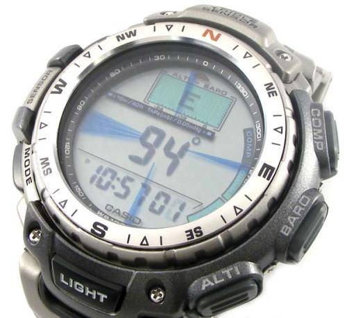 COMBINING DIGITAL COMPASS, BAROMETER, ALTIMETER AND THERMOMETER FUNCTIONS WITH EXCEPTIONAL TOUGHNESS AND DURABILITY, THE PROTREK TRIPLE SENSOR PATHFINDER REMAINS THE FIRST CHOICE FOR ALPINISTS AND EXTREME ADVENTURE SPORTSMAN. NEVER BEFORE HAS SO MANY RELIABLE FEATURES BEEN COMBINED IN A SINGLE WATCH!