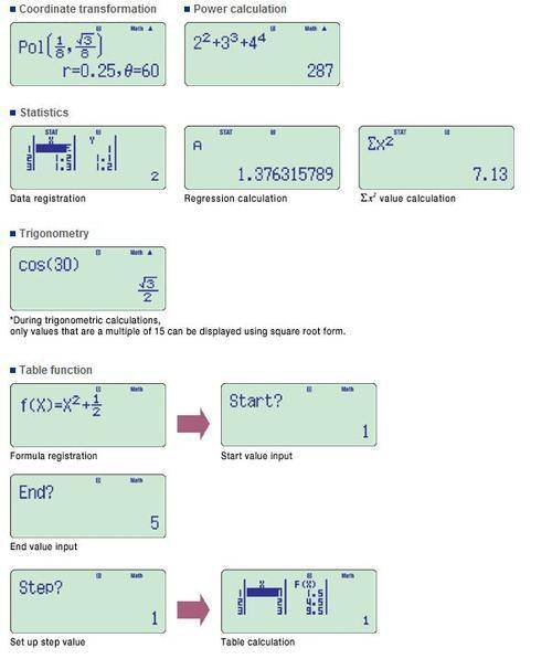 Statistics (List-based STAT data editor, standard deviation, regression analysis)