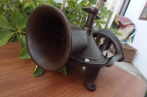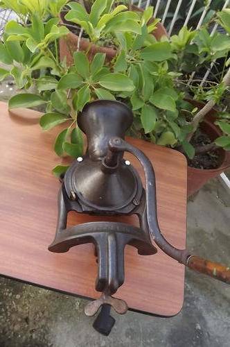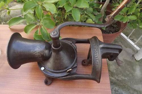 Cast Iron Coffee Grinder by Lovelock London. Fine condition but need new screws (don't match). Handle is brass - need cover