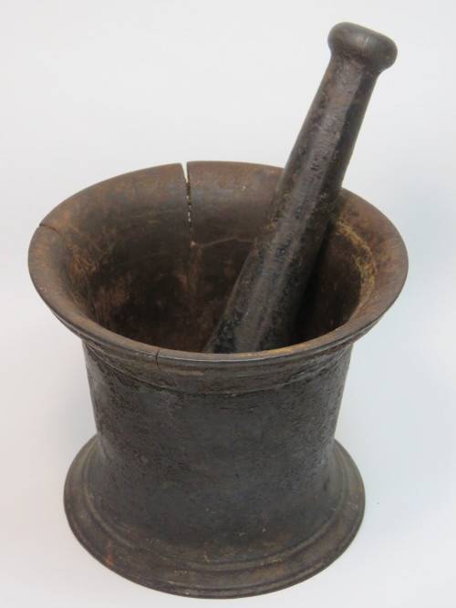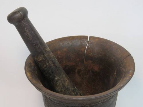 Cast iron mortar and cracked pestle - Mortar cracked