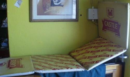 CASTLE LAGER PAVILION CUSHION IN GOOD CONDITION ONLY NEED SOME CLEANING.