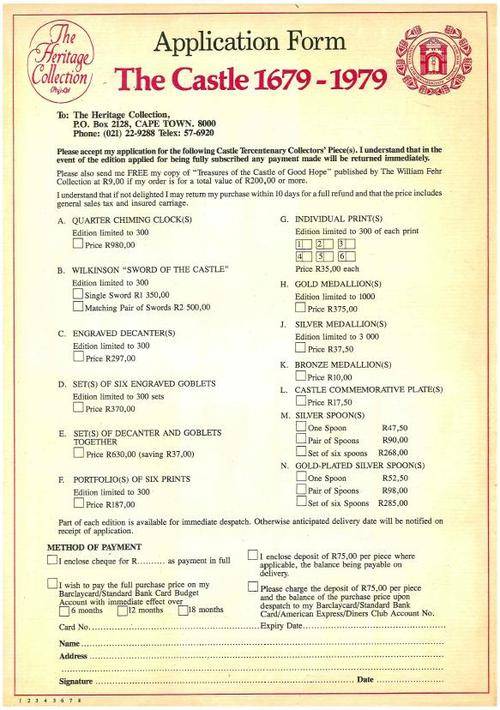 CASTLE OF GOOD HOPE TERCENTENARY COLLECTION