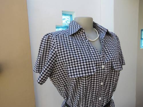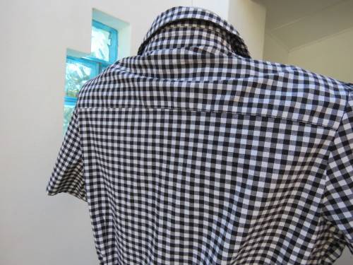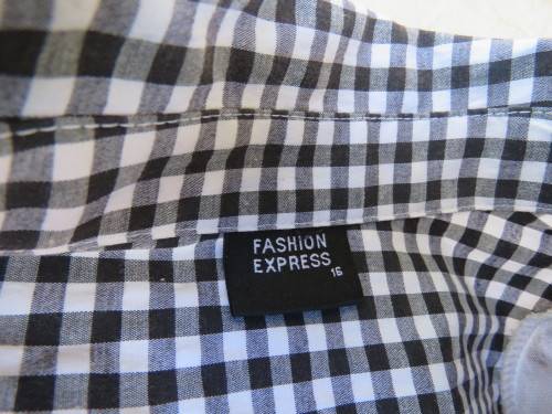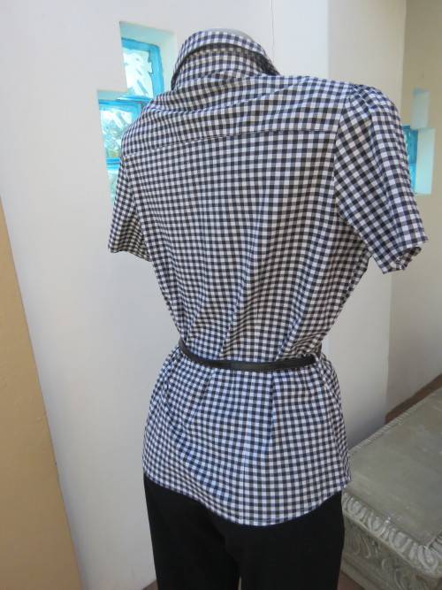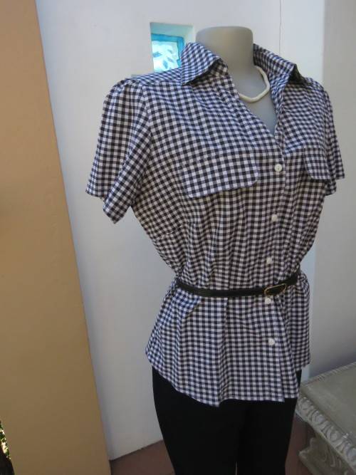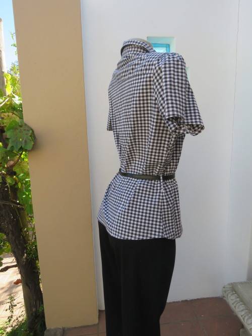 Casual black and white short sleeve top by 'FASHION EXPRESS' in 40/16.In polycotton stretch fabric.Dummy pockets on front.Button down with open collar.As new.