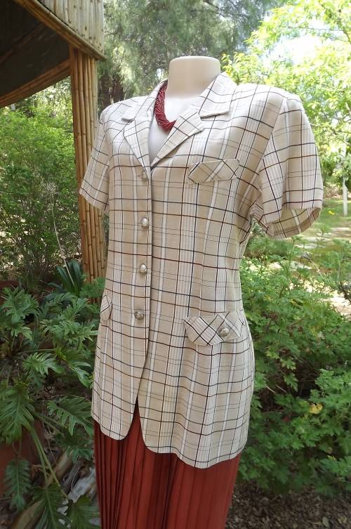 Casual but smart beige checked short sleeve jacket.Size 40/16.Dummy pockets on front.