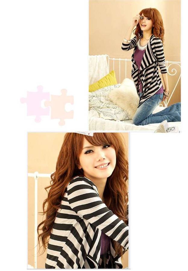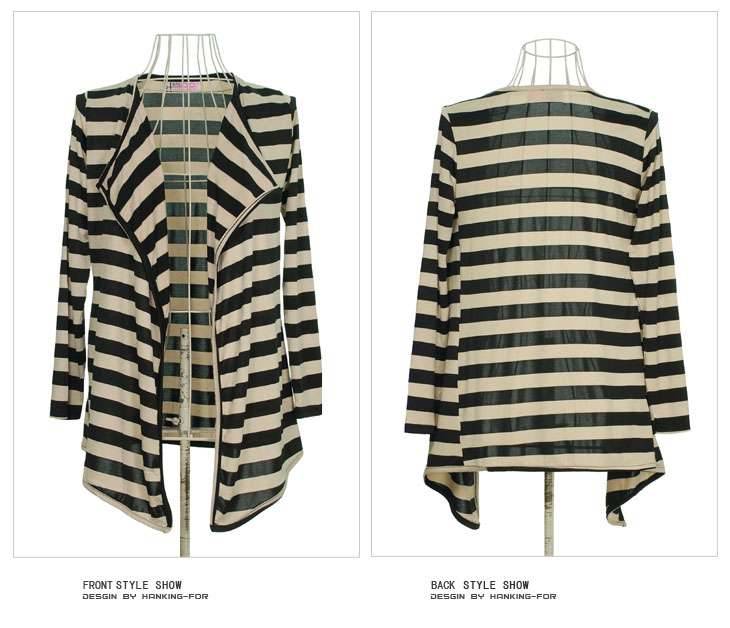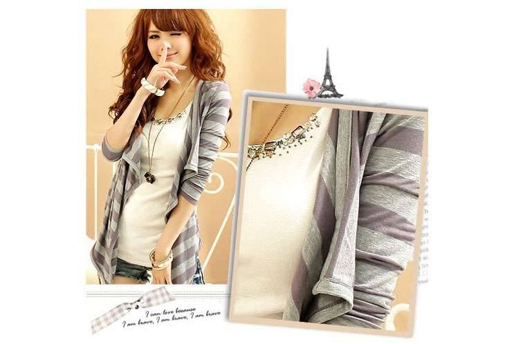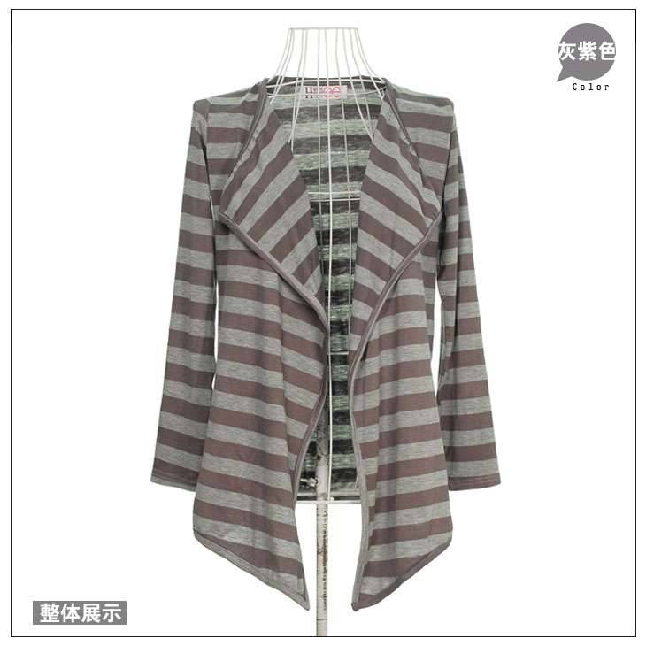 Casual striped long-sleeved jacket W60124 Gray OneSize