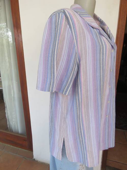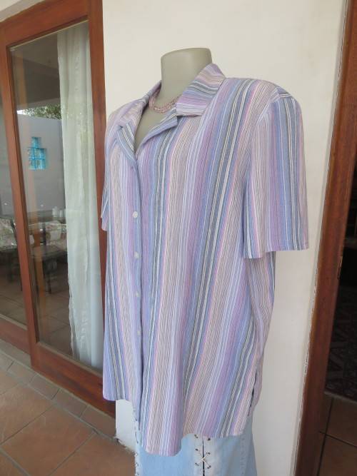 Casual violet,blue and beige 'MILADY'S' blouse in size 40/16.Textured poly cotton fabric.As new.