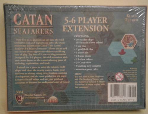 Now five to six players can sail into the uncharted and explore and settle the mysterious islands near Catan. The 5-6 Player Extension for The Seafarers of Catan allows you to add 1-2 more opponents without sacrificing ease of play. Try on of ten new exiting scenarios. Designed for 5-6 players, it adds even more drama to the award-winning game of seafaring, exploration, and trade.