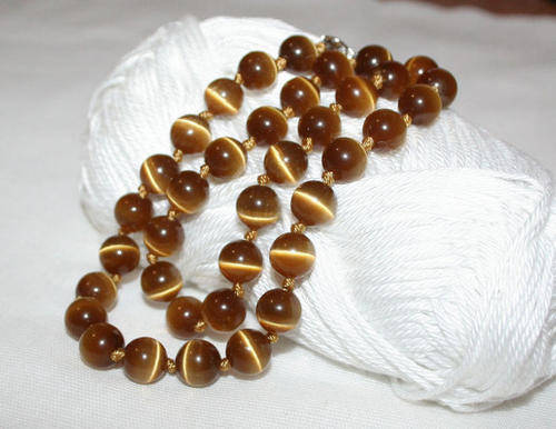 CATS EYE - GLASS BEADS - ROUND - LIGHT BROWN - 6mm